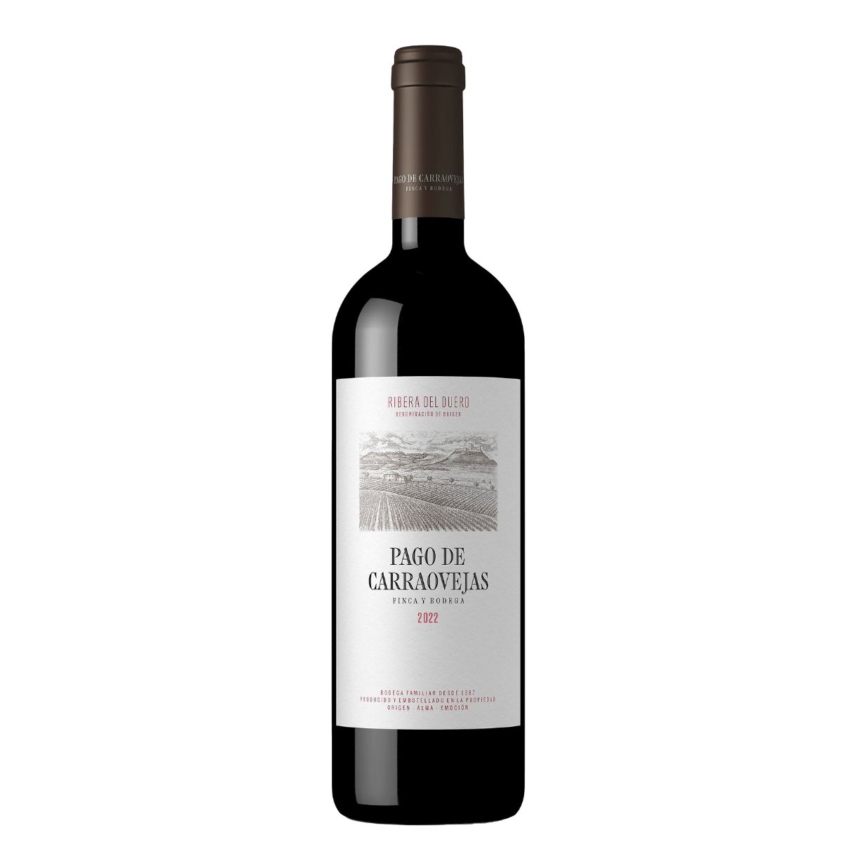 Pago de Carraovejas 2022 es el reflejo del valle al que debe su nombre; na expresión fiel y honesta del terruño. Su carácter fresco y equilibrado da como resultado un vino con cuerpo y ágil. De vibrante redondez, los matices florales se perciben de forma sutil junto a la fruta en una elaboración marcada por su elegancia, intensidad y estructura. Un vino capaz de transmitir con audacia su origen gracias a una identidad excepcional. Para la elaboración de este Pago de Carraovejas 2022 se han utilizado las tres variedades presentes en la finca: 93% de tempranillo, 4% de cabernet sauvignon y 3% de merlot. La interpretación más honesta del Valle de Carraovejas. Cuerpo, estructura y equilibrio con un fondo vibrante. Delicadeza, armonía y pasión por el detalle se perciben en un vino que refleja de forma sobresaliente el carácter único del valle